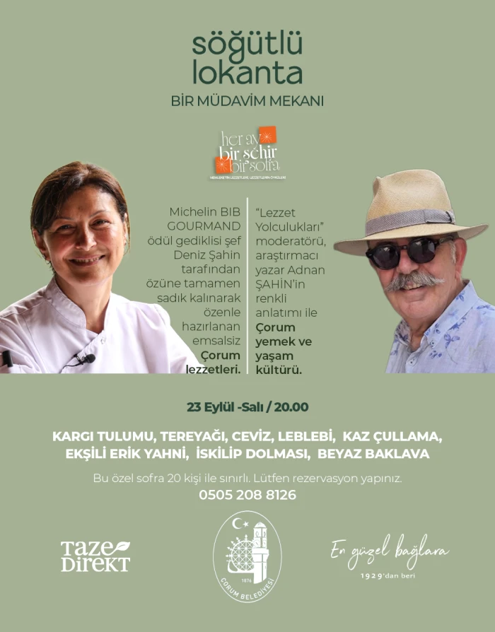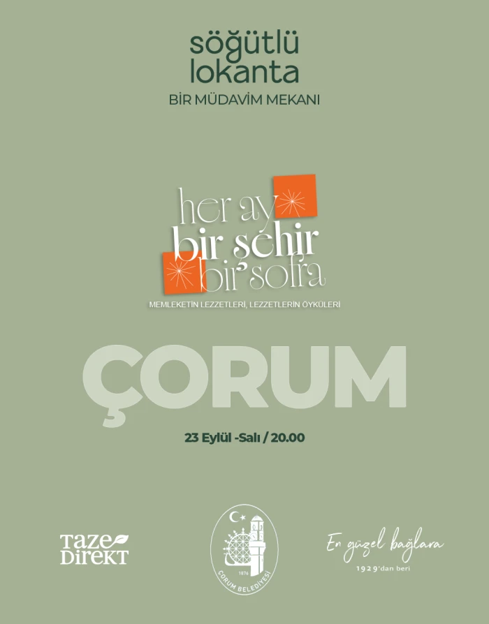 Kadıköy’ün kalbinde, Terminal Kadıköy’de yer alan Söğütlü Lokanta, geleneksel Anadolu mutfağını “Salı Masaları – Soframızda Ayda Bir Şehir” ile Anadolu’nun gastronomik zenginliklerini keşfe çıkarıyor. Serinin ilk konuğu Çorum olacak, konuklara yalnızca bir yemek deneyimi değil, aynı zamanda Çorum’un kültürel zenginliğini yansıtan otantik bir keşif imkânı sunacak. Etkinlikte öncelik yöresel yemeklerin aslına uygun lezzetlerini tanıtmak olacak; görsellik ise bu deneyimi destekleyecek.