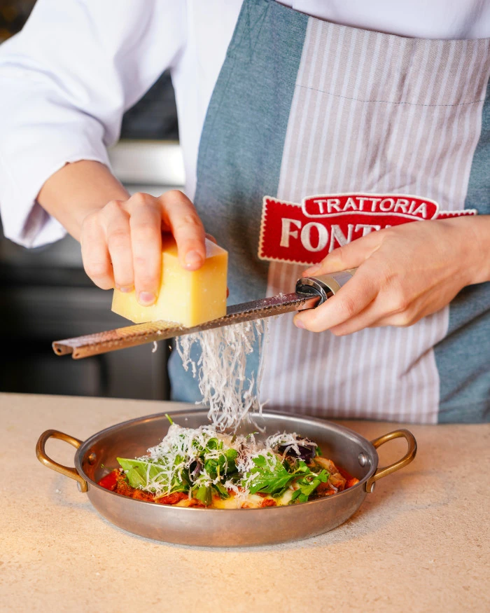 Klasik İtalyan reçetelerine yaratıcı dokunuşlar ekleyerek yeni nesil bir gastronomi anlatısı yaratan Trattoria Fontana’nın mutfağında makarna sadece makarna değil; elde yoğrulmuş, ustalıkla şekillendirilmiş bir sanat eseri gibi menu sunuyor. Menü, her gün taze malzemelerle yeniden kurgulanıyor ve şefin hayal gücünden geçen lezzetler sofralarda hayat buluyor. Klasiğe sadakatle başlayıp özgünlükle tamamlanan bu mutfak yolculuğu; burrata üzerine kavrulmuş fındık ve pesto sos, domates soslu mini pizzalar, köz patlıcanlı tortellini ve limon kabuğuyla parlayan ıspanaklı ricottalı ravioli gibi eşsiz tatlarla taçlanıyor.