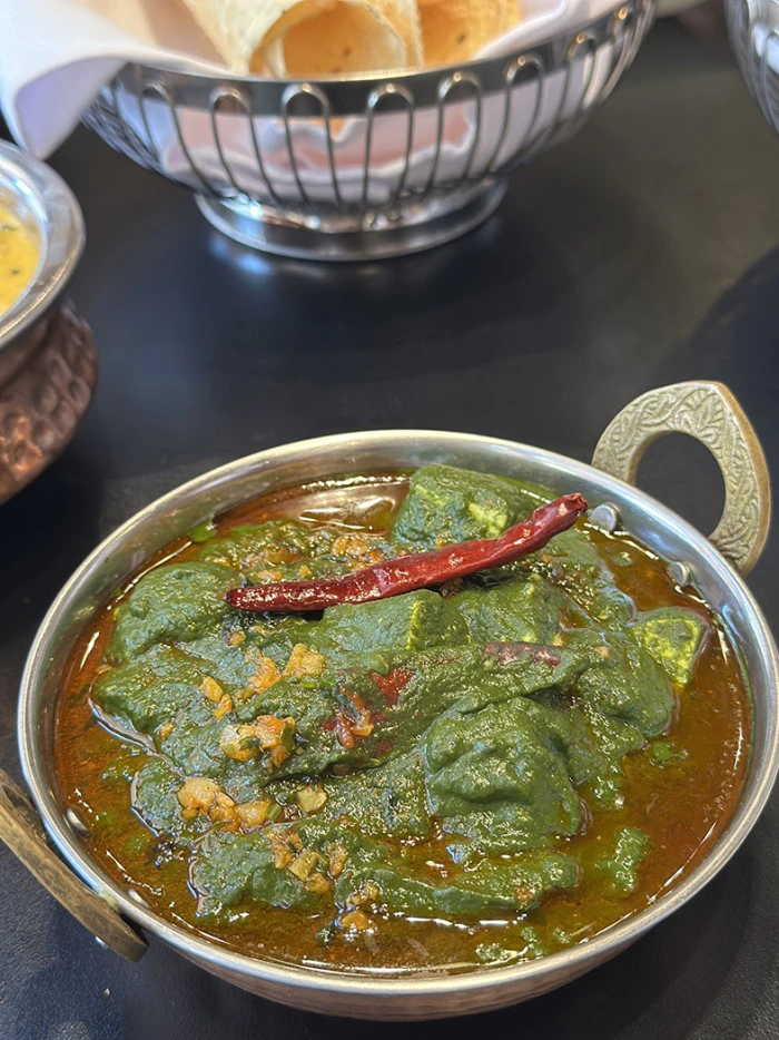 Şef Sevuga ve Satypal’ın elinden çıkan bu tadım menüsü, Hindistan’ın zengin mutfak kültürünü zarif bir anlatımla masaya taşıyor. Menü, yoğurt ve baharatlarla marine edilmiş paneer tikka ile başlıyor; ardından krema ve peynirle yumuşatılmış kemiksiz tavuk parçalarıyla hazırlanan malai tikka, Hindistan’ın kuzeyinden gelen bir konfor hissi sunuyor. Sebzeli pakora, nohut ununun çıtır dokusuyla geleneksel sokak lezzetlerini yeniden yorumlarken; aloo tikki chaat, chutney sosları ve baharatlarla nostaljik bir sokak hikâyesi anlatıyor. Ana yemeklerde, sebzeli biryani aromatik basmati pirinciyle menünün kalbini oluşturuyor. Hafif baharatlı ıspanak sosunda saag paneer, Hint ev mutfağının sıcaklığını yansıtırken; Goa usulü sebzeli köri ve karides köri, hindistan cevizi, kırmızı biber ve tamarind ile tropik bir tat yolculuğu sunuyor. Butter chicken, kremalı domates sosuyla klasik bir Hint lezzetini rafine bir sunumla yeniden canlandırıyor. Dal makhani ise tereyağı ve krema ile yavaşça pişirilmiş siyah mercimekleriyle Hint mutfağının sabrını ve derinliğini temsil ediyor. Sarımsaklı naan ise bu lezzetleri tamamlayan geleneksel bir eşlikçi olarak sofrada yerini alıyor. Tatlı finalde de yine safranla tatlandırılmış irmik pudingi rava kesar ve süt, şehriye, kuru yemişlerle hazırlanan seviyan kheer yer alıyor.
