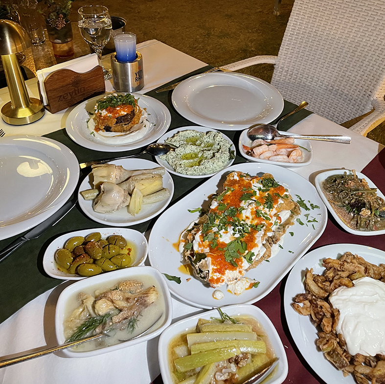 Zeytin yağıyla zenginleştirilmiş başlangıçlar, mevsim sebzeleriyle hazırlanan ana yemekler ve yöresel otların sade dokunuşlarla kullanıldığı özel tarifler.