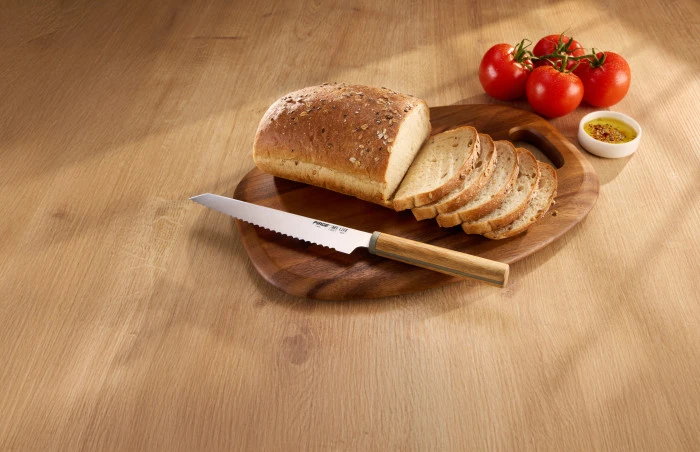 Taze ekmeklerin ufalanmadan kesilmesi için tasarlanan Pirge Life Ekmek Bıçağı, gelenekselliği harmanladığı modernizimle yeni nesil bir kesim deneyim sunuyor. Dişli ağız yapısı sayesinde bagetlerden baton veya en büyük sandviç ekmeklerine kadar tüm ekmeklerin kesimini kolaylaştıran bıçak, akasya ağacı ve zeytin çekirdeği içeren sapıyla, her kullanımda kullanıcısının doğayla daha derin bir bağ kurmasını sağlıyor. Keskinliği, sunduğu kullanım kolaylığıyla hayata pratiklik kazandıran, geri dönüştürülebilen malzemeleriyle sürdürülebilirliği destekleyen Pirge Life Ekmek Bıçağı, sadece keskinlik değil, doğa dostu bir yaşam tarzını da kullanıcısıyla buluşturuyor.
