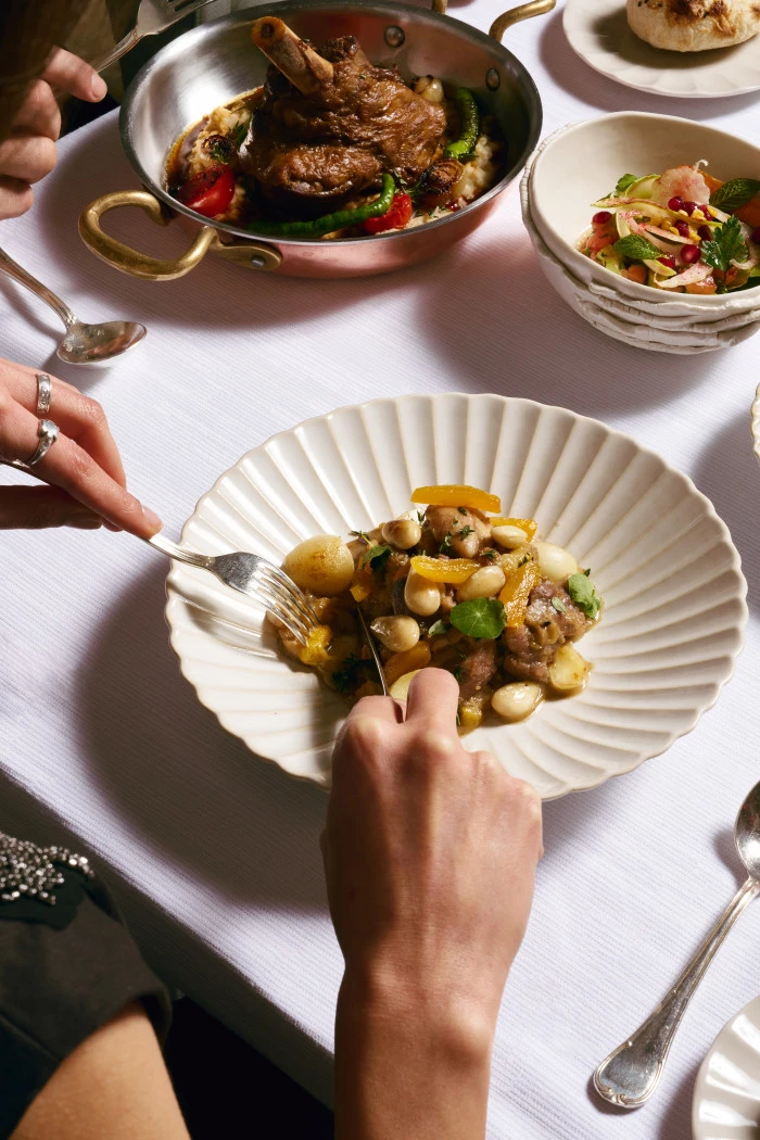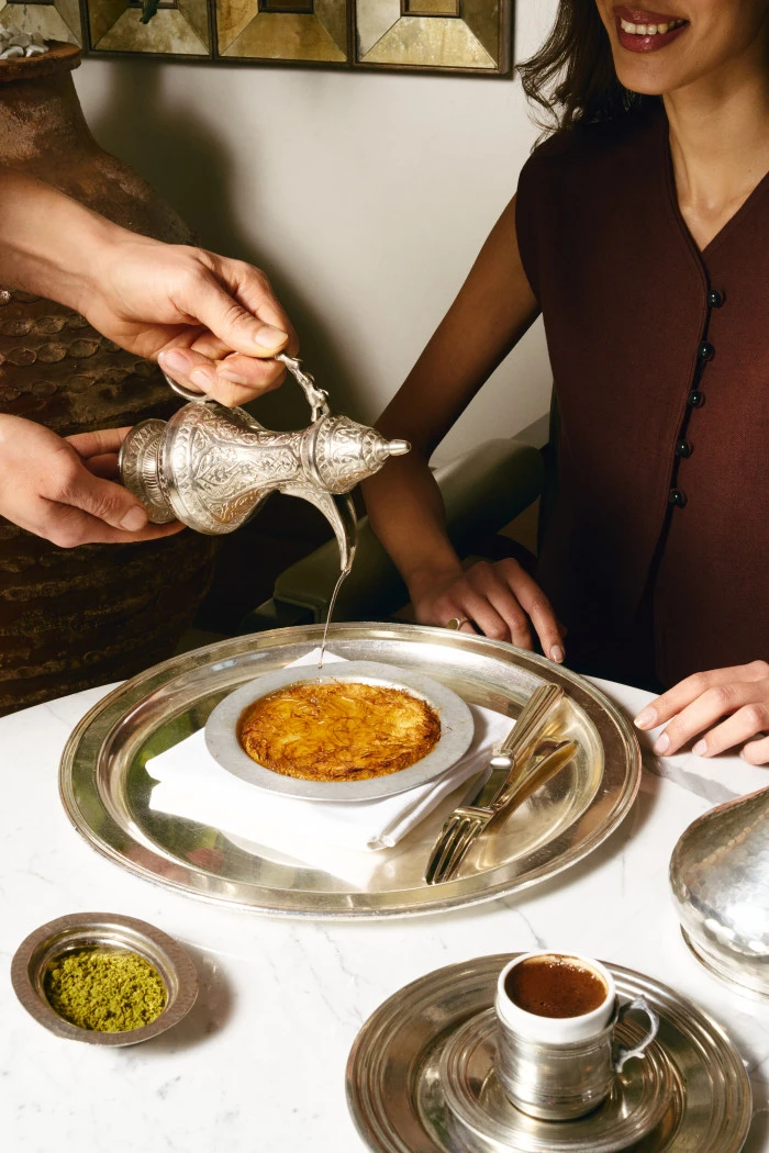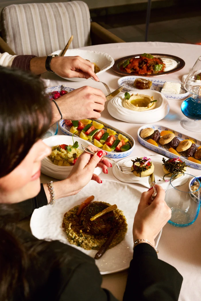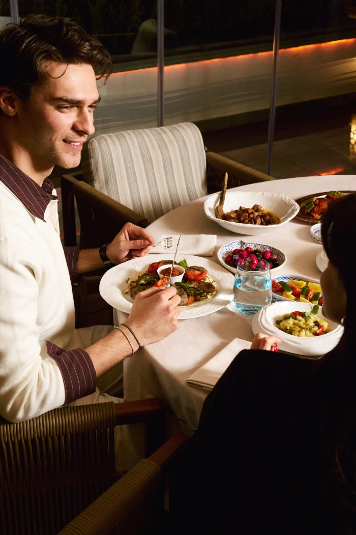 Terasın özel noktalarından birinde konumlanan Ocakbaşı ise daha butik bir atmosfer arayanlar için dört aşamalı bir set menü sunuyor. Menü, mercimek çorbası ile başlıyor; pastırma, bal ve manda kaymağı, tulum peyniri ve hurma gibi iftariyeliklerin yanı sıra humus, babagannuş, muhammara ve haydari gibi klasik mezeler sofraya geliyor. İçli köfte ve pazı dolmasının ardından ana yemekte ocakbaşı mutfağının güçlü temsilcisi Adana kebap sunuluyor. Final, şerbetli ve sütlü tatların bir arada yer aldığı karışık Türk tatlı tabağı ile yapılıyor.