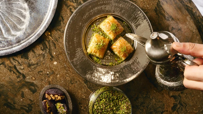 Tarihi yarımadanın kalbinde hizmet veren otelin ferah avlusunda yer alan restoranı AVLU’da, Executive Chef Özgür Üstün ve ekibinin özenle hazırladığı seçmeli iftar menüsü, Ramazan akşamlarını canlı fasıl müziği eşliğinde geleneksel tatlarla buluşturuyor. İftar sofraları süzme mercimek çorbası ile açılıyor; hurma, zeytin, yerel peynirler ve manda kaymağı gibi zengin iftariyelikler ile humus, muhammara ve yaprak sarma gibi klasik mezeler sofraya geliyor. Odun fırınından çıkan etli ekmek ve tereyağında kavrulmuş ceviz ile yoğurt eşliğinde sunulan tulum peynirli ve ıspanaklı piruhi, menünün öne çıkan sıcak lezzetleri arasında yer alıyor.