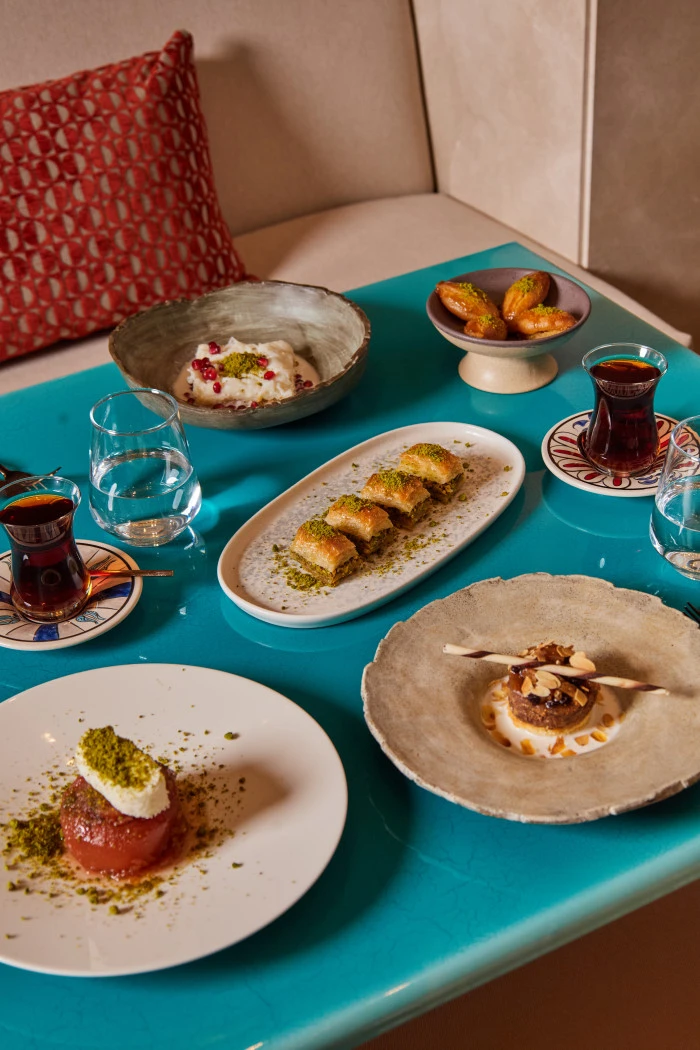Ramazan’a özel menü, geleneksel iftariyeliklerle başlıyor. Kayseri pastırması, Akçaabat tereyağı, Vakfıkebir pidesi ve peynir çeşitlerinden oluşan başlangıç seçkisini; mevsiminde seçilen malzemelerle hazırlanan zeytinyağlılar, ferahlatıcı salatalar ve günün sıcak çorbası takip ediyor. Sıcak başlangıçlarda, Borsa’nın meşhur su böreği, etli karalahana sarması ve mandıra yoğurdu yer alıyor. Ana yemekler ise özenle hazırlanan üç farklı lezzetten oluşuyor: yaprak kesim et döner, ızgarada pişirilmiş Borsa usulü köfte ve hünkar beğendi eşliğinde Konya usulü taş fırında kuzu tandır. Her biri geleneksel tariflere sadık kalınarak özenle pişiriliyor.