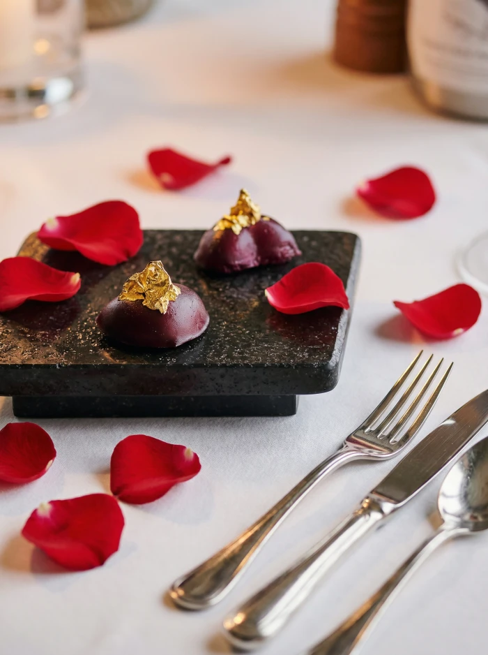 Gecenin finali ise çarkıfelek meyvesi ve hindistancevizi mousse kek ile taçlanıyor. Orman meyveleri, lotus kıtırları ve frambuaz dondurmanın eşlik ettiği bu zarif tatlı, romantik akşamın hafızalarda iz bırakan son dokunuşu oluyor.