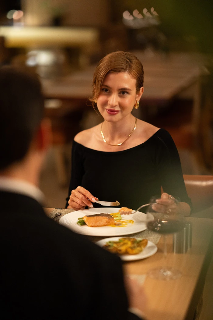 Ara sıcaklarda yaprak ciğer, bebek kalamar tava ve fırın mantı servis edilirken; ana yemeklerde kuzu şaşlık, tavuk şiş, Adana kebap, geleneksel yoğurtlu kebap ve ızgara deniz levreği seçenekleri sunuluyor.