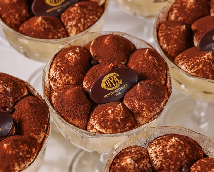 İnce işçilikle hazırlanmış ladyfinger hamuru, özenle demlenmiş yoğun aromalı Cova espresso ile buluşturuluyor. Kat kat özenle yerleştirilen bu bazın üzerine, İtalya’nın en rafine lezzetlerinden biri olan mascarpone peyniri kremasıekleniyor. Son dokunuşta ise kaliteli bitter kakao tozu serpiliyor ve ortaya hem görsel hem de duyusal olarak unutulmaz bir tatlı çıkıyor.