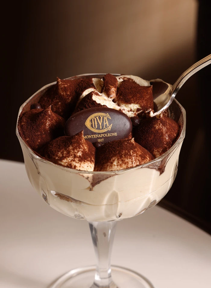 Adını İtalyanca “tirami su” ifadesinden alan, yani “beni neşelendir” anlamına gelen tiramisu, Cova’nın ustalığıyla hazırlandığında yalnızca bir tatlı değil, aynı zamanda bir mutluluk ritüeli haline geliyor.