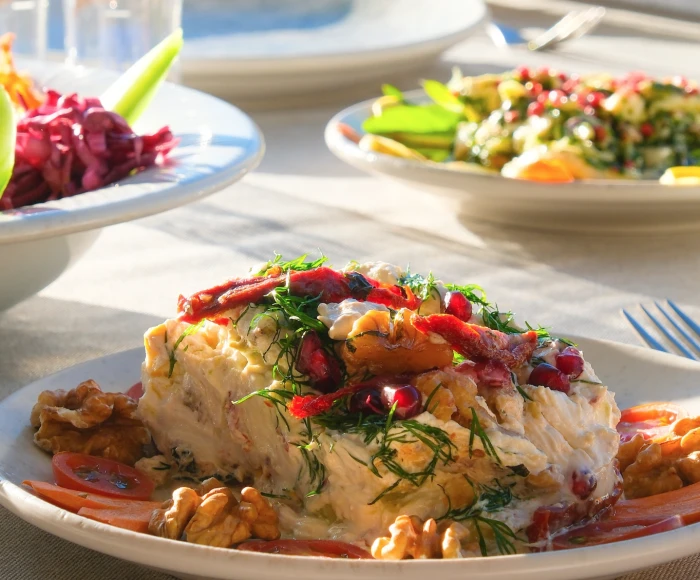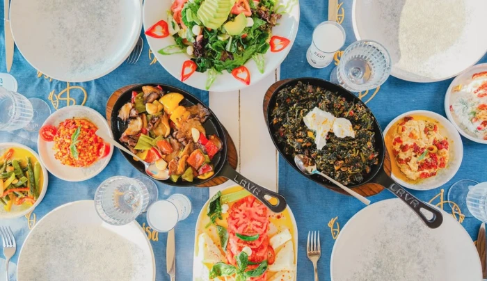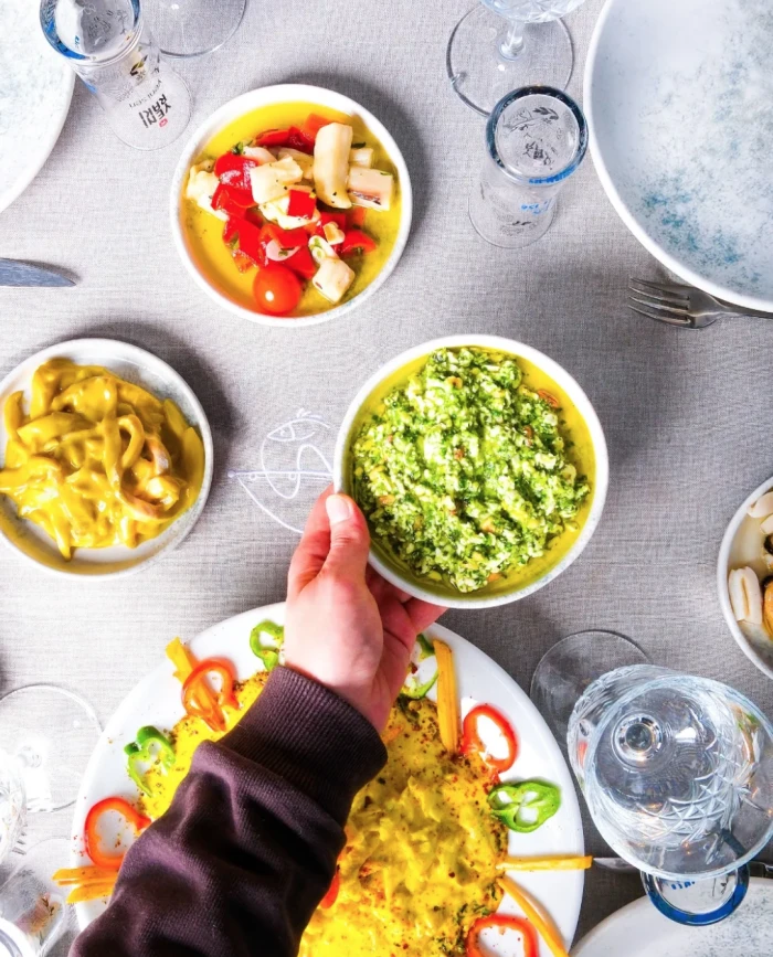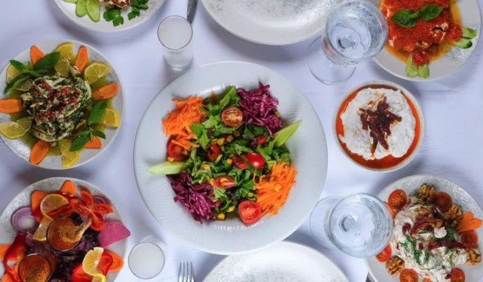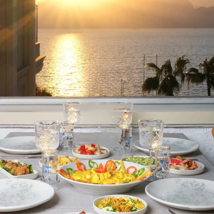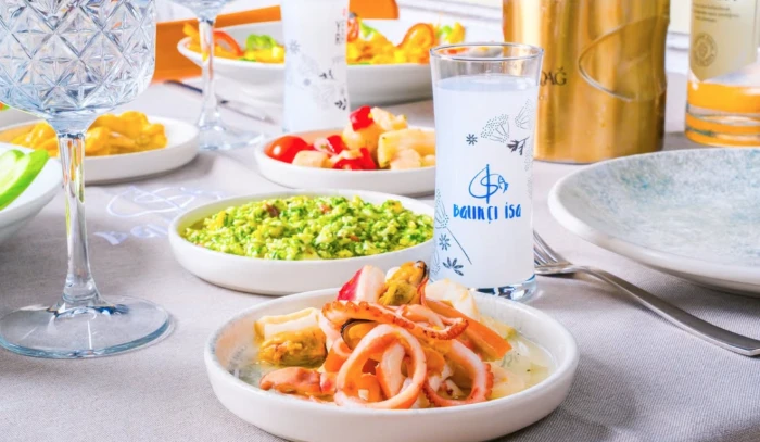 Mezeler sırayla gelir, balığın dumanı tüterken muhabbet koyulaşır.