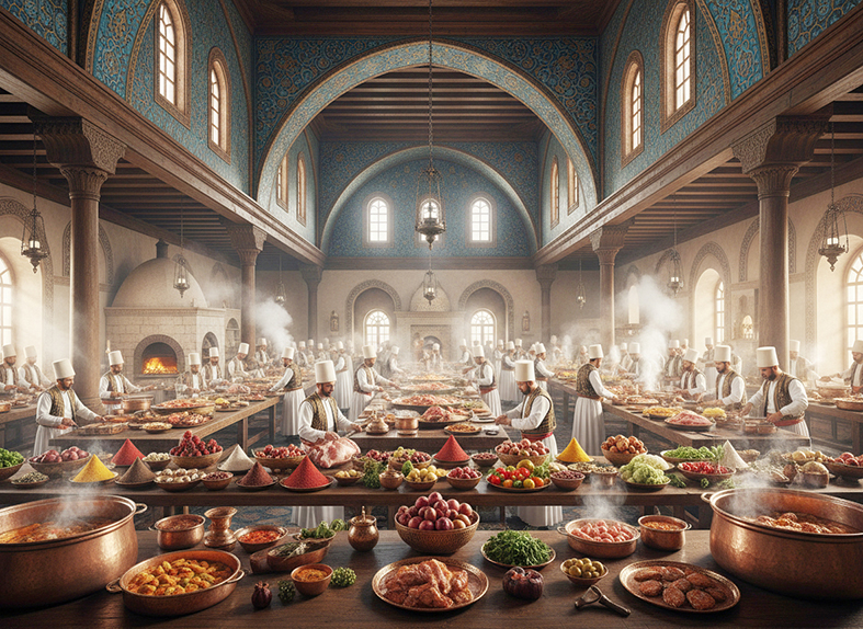 Osmanlı zamanında işler iyice profesyonelleşti. Aşçı olmak için sınavlar var, eğitim var… Yani şimdiki “şeflik sertifikası” olayının atası aslında saray mutfağı! Balkanlar’dan Akdeniz’e, Ege’den Orta Doğu’ya kadar ne varsa toplanmış; sonuç olarak ortaya devasa bir lezzet arşivi çıkmış. Bir nevi dönemin MasterChef All Starsı.