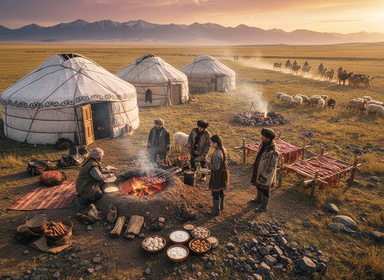 Orta Asya’da et ve süt ürünleriyle başlayan bu yemek yolculuğumuz, ateşle tanışınca “yüksek ısıda pişirme” diye hava atmaya başladı. Kımız, kavurma, tandır… Hepsinin kökleri Orta Asya’da; yani atalarımızın “barbekü” kültürü düşündüğümüzden daha eski.
