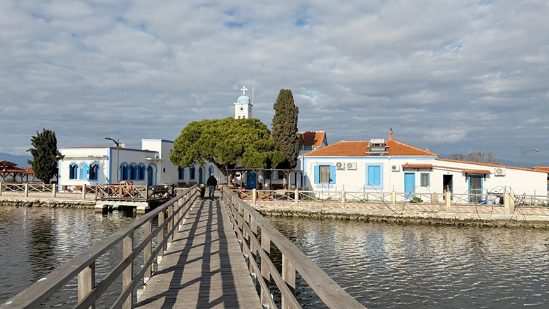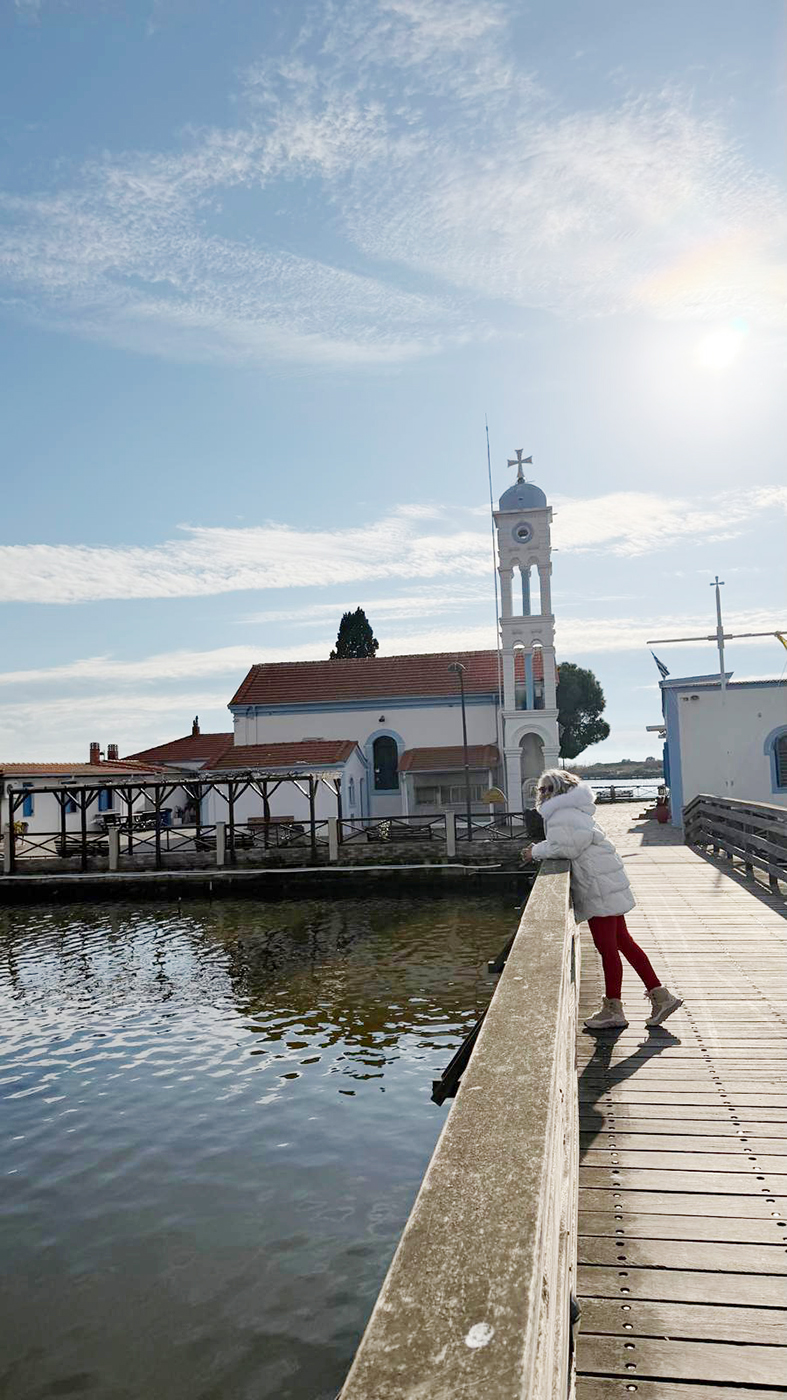 Vistonida Gölü’nün ortasında, ahşap bir iskeleyle ulaşılan Agios Nikolaos (Aziz Nikolaos) Kilisesi, Porto Lagos’un en etkileyici noktası. Bir ayağı karada, bir ayağı suda duran bu yapı; mimarisinden çok, taşıdığı anlamla etkiliyor insanı.