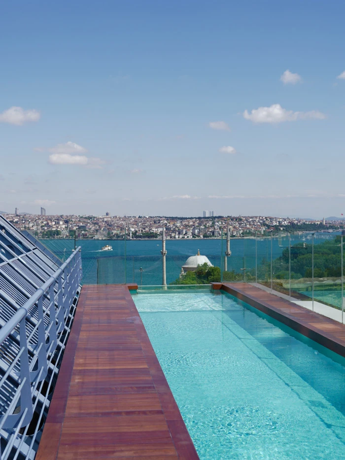 Sosyal hayatın vazgeçilmez buluşma noktalarından biri olan The Roof at The Ritz-Carlton, Istanbul benzersiz lokasyonuyla şehrin kalbinde konumlanıyor. Otelden ayrı da bir girişe sahip olan The Roof’ta, sakin dinlenme alanları, havuz keyfi ve açık havada tüm gün süren yemek deneyimi; geceleri seçkin ve modern bir restoran & bar konseptiyle aynı çatı altında sunuluyor.