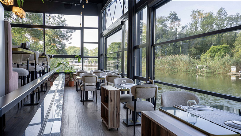 Restoranın iç tasarımı da doğayla iç içe. Masif ahşap masalar, nehir taşlarından yapılmış dekorlar, geniş camlar… Dışarıda kar yağarken içeride şöminenin çıtırtılarıyla yemek yemek, birçok misafirin “hayatımın en güzel akşamı” diye tanımlıyor.