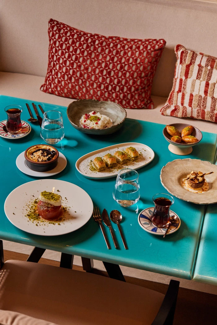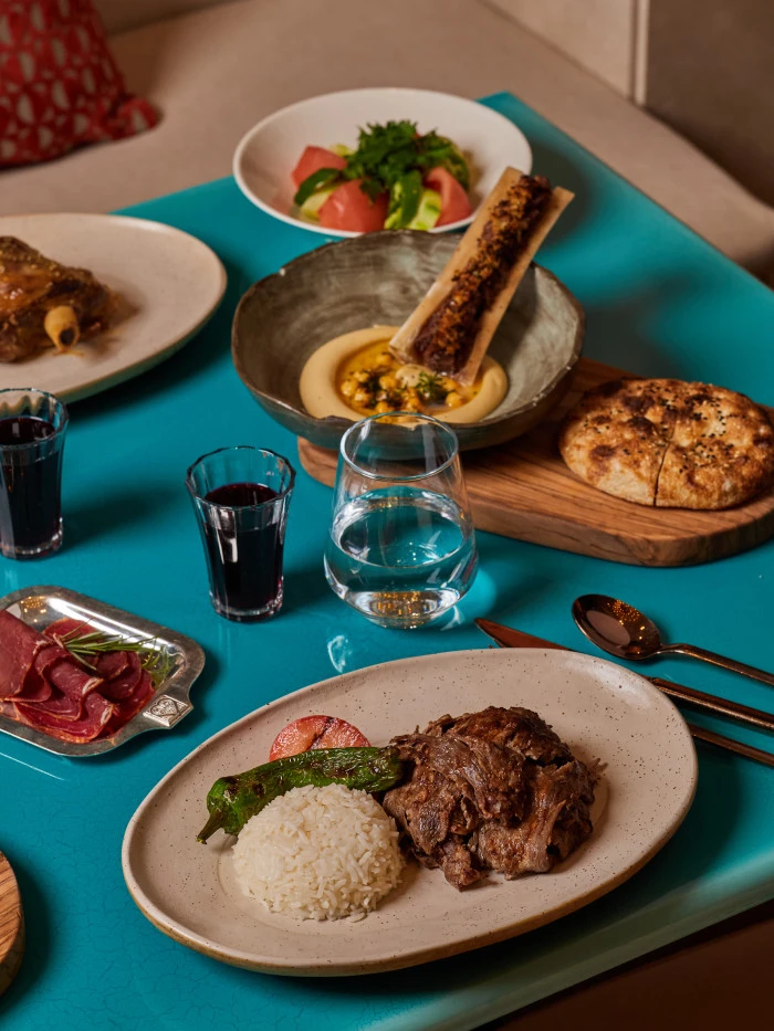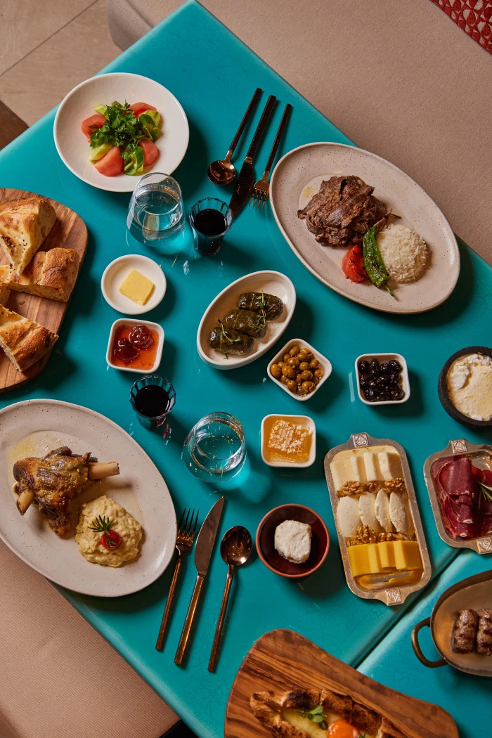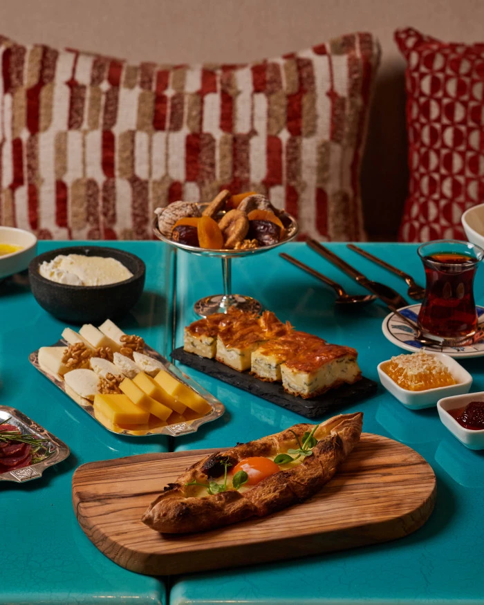 Ramazan’a özel menü, geleneksel iftariyeliklerle başlıyor. Kayseri pastırması, Akçaabat tereyağı, Vakfıkebir pidesi ve peynir çeşitlerinden oluşan başlangıç seçkisini; mevsiminde seçilen malzemelerle hazırlanan zeytinyağlılar, ferahlatıcı salatalar ve günün sıcak çorbası takip ediyor. Sıcak başlangıçlarda, Borsa’nın meşhur su böreği, etli karalahana sarması ve mandıra yoğurdu yer alıyor. Ana yemekler ise özenle hazırlanan üç farklı lezzetten oluşuyor: yaprak kesim et döner, ızgarada pişirilmiş Borsa usulü köfte ve hünkar beğendi eşliğinde Konya usulü taş fırında kuzu tandır. Her biri geleneksel tariflere sadık kalınarak özenle pişiriliyor.