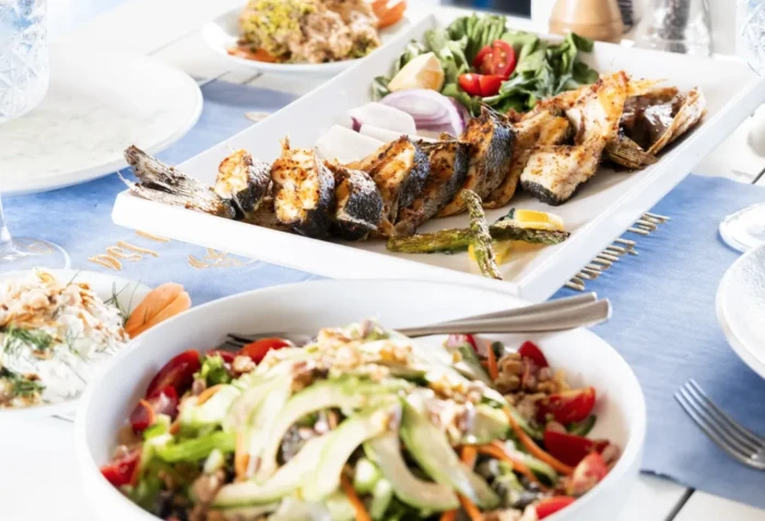 Mezeler sırayla gelir, balığın dumanı tüterken muhabbet koyulaşır.