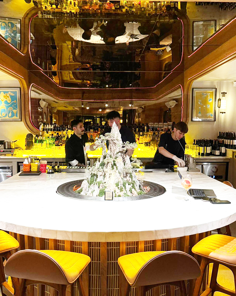 Daha kapıdan içeri adım attığınız anda kokteyllerin koku–tat–görsellik üçlemiyle yarattığı o sahici bütünlük sizi başka bir boyuta taşıyor. Modern miksoloji burada yalnızca bir bar deneyimi değil; adeta duyusal bir sanat performansı.
