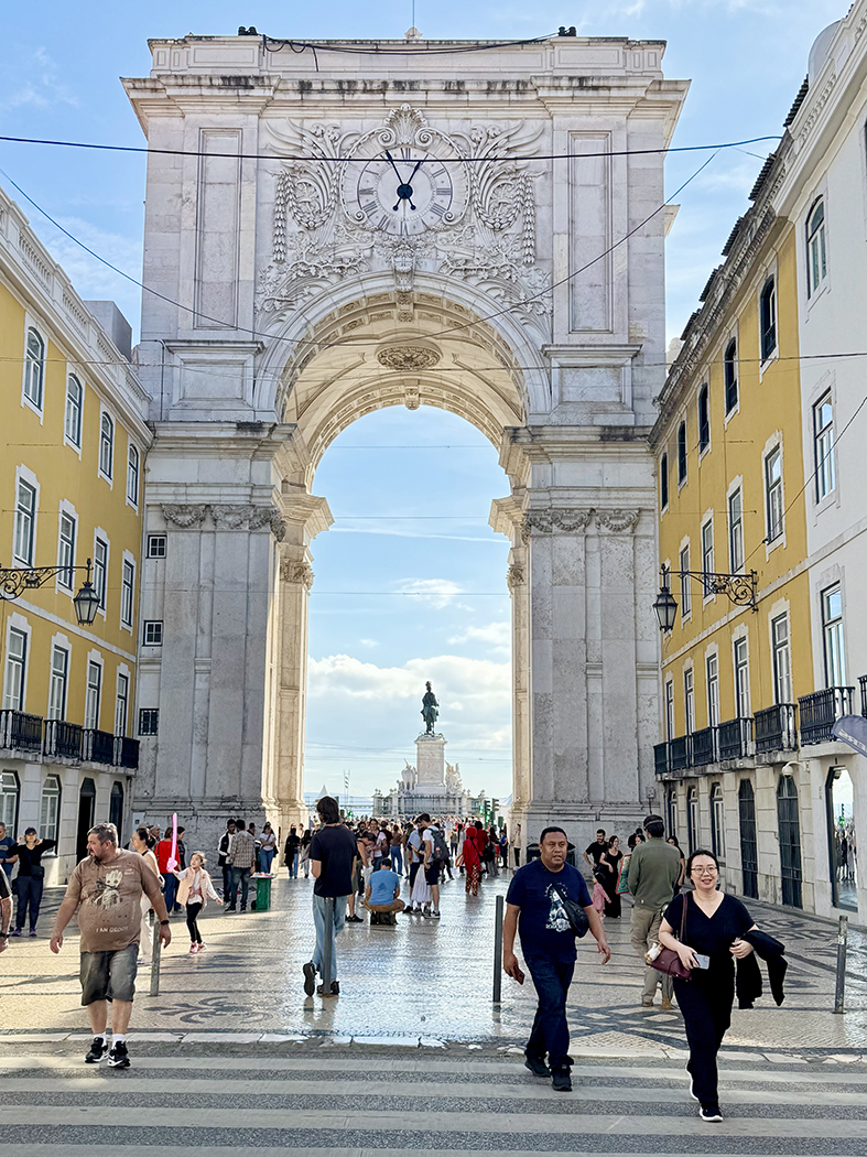 Ertesi gün Lizbon’da gezilecek yerler listesinde bulunan tarihi, kültürel ve doğal güzellikleri keşfetmek için otelden ayrıldık. Şehirde gerek toplu taşıma ağı gerekse Bolt, Uber gibi uygulamalar oldukça yaygın olduğundan bir yerden diğer yere ulaşmak oldukça kolay. İlk ziyaret noktamız, şehirde turistlerin en çok fotoğraf çekildiği Bica Funicular oldu. Misericórdia bölgesinde bulunan bu ikonik noktada fotoğraf çekilmek için ya erken saatlerde gitmek ya da uzun bir kuyruk beklemeniz gerekli. Ardından Arnavut kaldırımlı dar sokaklardan yürüyerek Bairro Alto bölgesinde şehrin ruhunu hissettik. Pink Street olarak bilinen Rua Nova do Carvalho sokağından geçerek eski dönemlerde ticaretin kalbinin attığı liman bölgesi olan Praça do Comércio’ye (Ticaret Meydanı) ulaştık. 18. yüzyılda inşa edilen Arco da Rua Augusta’ya (Rua Augusta Zafer Takı) altından geçerek yeme-içme, eğlence ve alışverişin birleştiği Rua Augusta Caddesi boyunca yürüdük. Lizbon ile İstanbul birçok açıdan birbirine benziyor; Rua Augusta da bana İstiklal Caddesi’ni anımsattı. Caddenin sonunda mimarı olarak Eiffel’den etkilenerek inşa edilen; ancak asıl amacı tepelere ulaşımı kolaylaştıran neo-gotik bir demir yapı olan Elevador de Santa Justa’ya (Santa Justa Asansörü) ulaştık. Günü, Alfama bölgesindeki bahçe duvarlarında mavi-beyaz çini panolarla Lizbon’un tarihini sahneleyen ve gün batımının en güzel izlenebildiği birbirine yakın iki nokta ile tamamladık: Jardim Júlio de Castilho ve Miradouro de Santa Luzia.