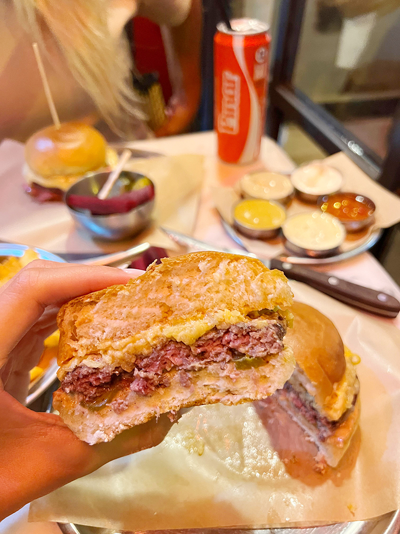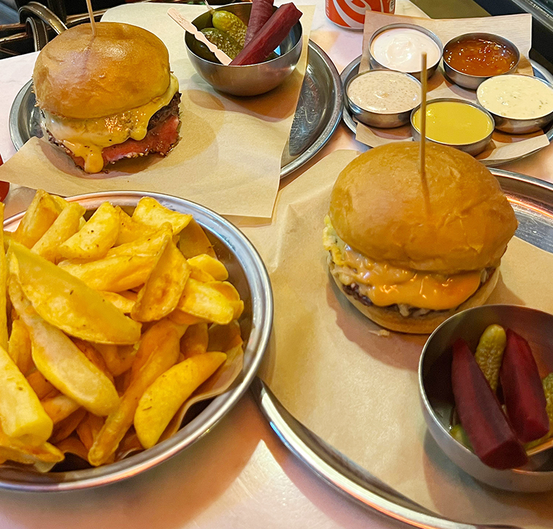Bizim denediklerimiz menünün en yenilerinden; eritilmiş Raclette peynirli roast beef burger ve Kars eski kaşarlı ve kırmızı cheddarlı burger.