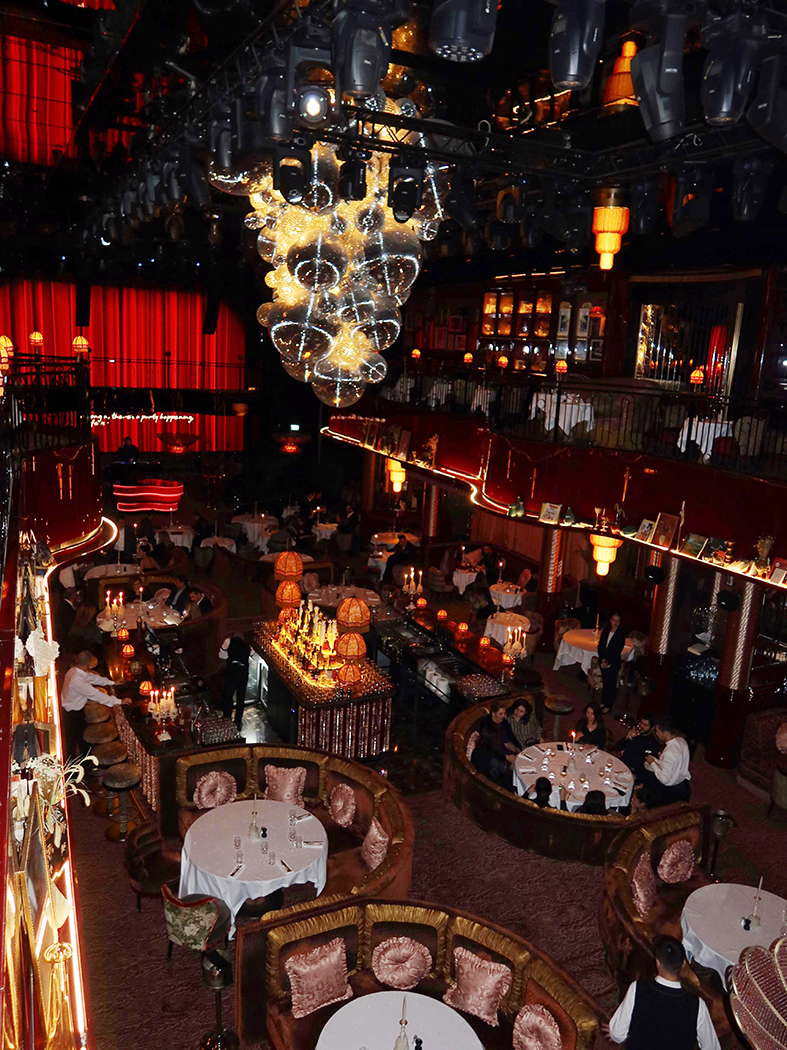 Mondaine, ilhamını Paris’in 70’li yıllardaki ihtişamlı gece hayatından alıyor. Bu ilham, mekânın her köşesinde hissediliyor: loş ışıklar, kadife dokular, teatral sahne hissi ve detaylara gösterilen özen… Dress code da bu dekorasyona yakışır şekilde şık / “glam chic” Ancak burayı özel kılan yalnızca dekorasyonu değil; sunduğu deneyimin katmanlı yapısı. Çünkü burası klasik bir restoran değil. Daha doğrusu, yalnızca restoran olarak kalmayı reddeden bir yer.