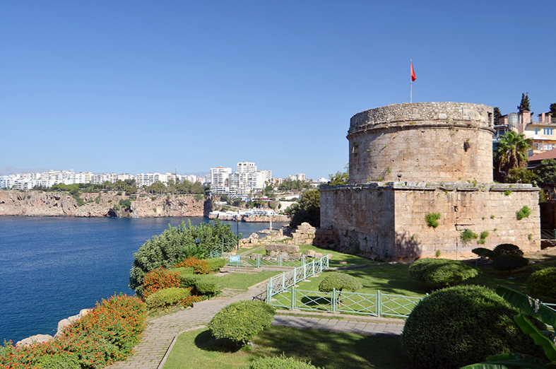 Antalya surların üzerinde yer alan14 metre yüksekliğinde alt kısmı kara üst kısmı silindir biçimindeki kule 2. yy’den günümüze kadar gelmiştir. Roma İmparatoru Hadriyanus’un yaptırdığı düşünülen kulenin aynı zaman alt katta kaybolmaya yüz tutan frenskler sayesinde bir kahraman mezarı olduğu da düşünülmektedir. Merdiven sayesinde dehliz içinden üst kata ulaşılıp deniz feneri ve körfeze gelen gemileri gözetleme kulesi olarak kullanıldığı bilinmektedir.